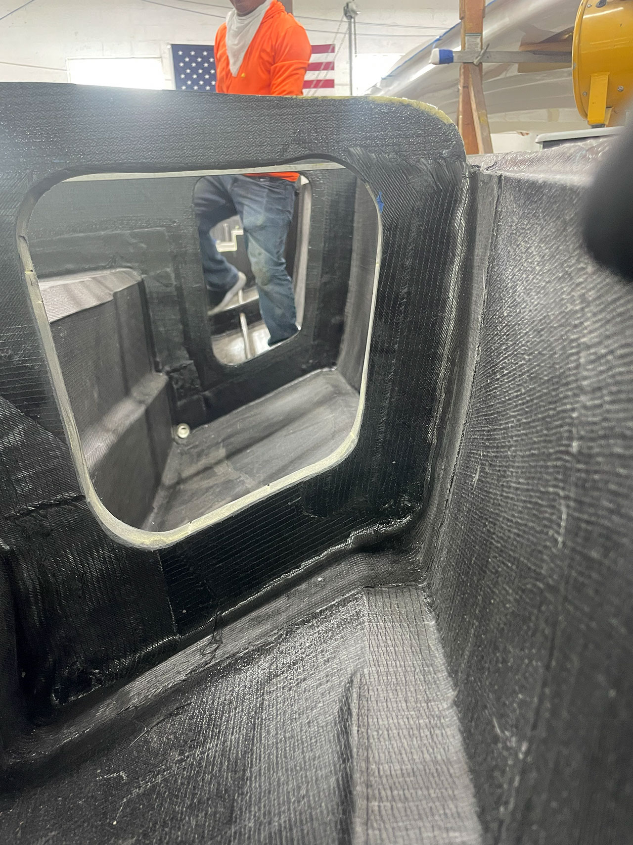 Every Phoenix catamaran is built using engineered quad-axial carbon-Innegra hybrid laminates from VectorPly, industry-leading PRO-SET epoxy and vinylester resins and high-end Polynt gelcoat. Hull sides and bottoms, decks and small parts are cored with one-inch-thick engineered structural coring, while transoms are cored with two-inch-thick Coosa Bluewater 26 composite. Fuel tanks are mil-spec epoxy-coated aluminum.